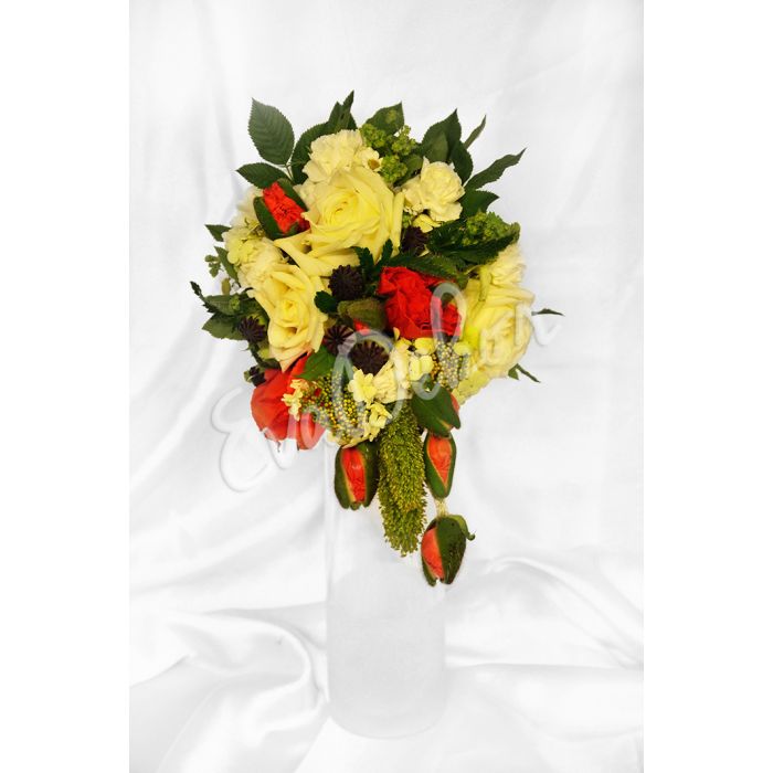 Vlčí máky, růže, máčky, kalina, mix zeleně.