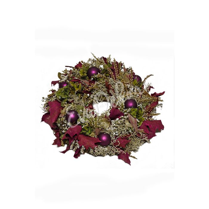 Vánoční věnec určený k pověšení (dveře, stěna) ve fialovo šedivé kombinaci. Maximální využití přírodním materiálů.